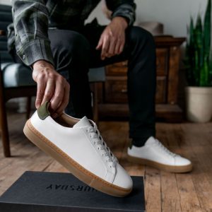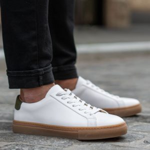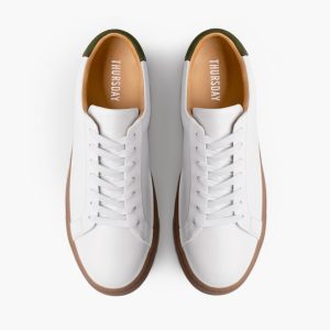 - White Nappa Leather With Green Heel Accent